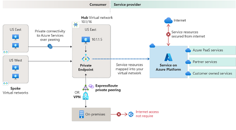 Azure Private Link enables you to access Azure PaaS Services (for example, Azure Storage and SQL Database) and Azure hosted customer-owned/partner services over a private endpoint in your virtual network. Traffic between your virtual network and the service travels through the Microsoft backbone network. Exposing your service to the public internet is no longer necessary. You can create your own private link service in your virtual network and deliver it to your customers.